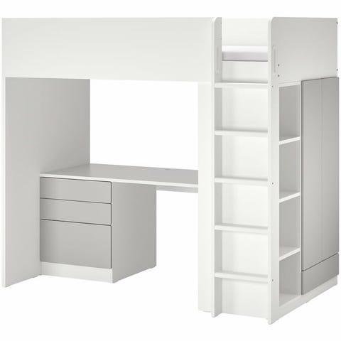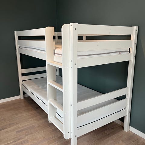 Säljer en vit våningssäng i gott och funktionellt skick. Stabil konstruktion, perfekt för barnrum.