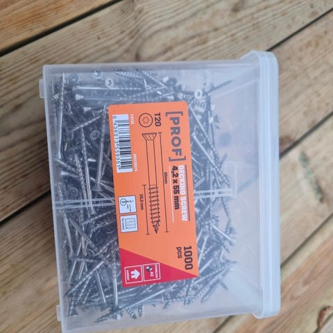 Säljer en hel förpackning professionella trallskruvar i rostfritt stål (A2).