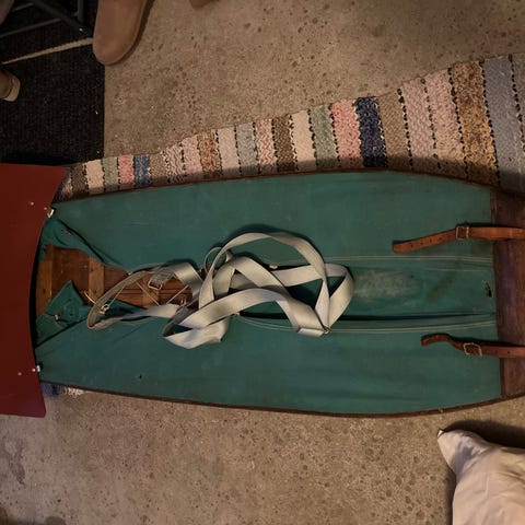 Våran egen lösning för extra säkerhet är monterad i dagsläget men enkelt att ta bort om man inte önskar ha med denna. Det är helt enkelt rep som fästes vid midjebandet som man kan släppa för att få en repknut att bromsa pulkan i branta nedförsbackar.
