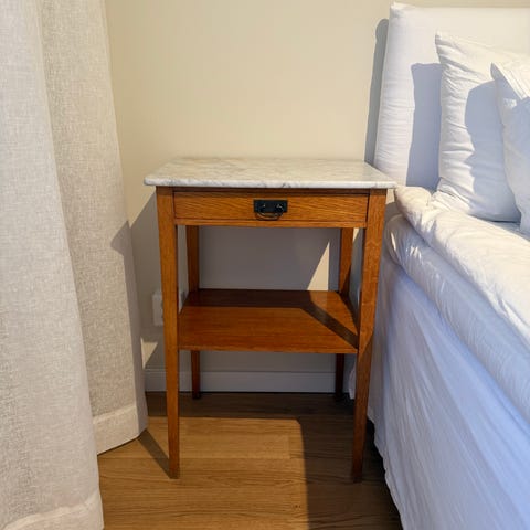 De är stilrena avlastningsbord/sängborden är köpta på Mio.