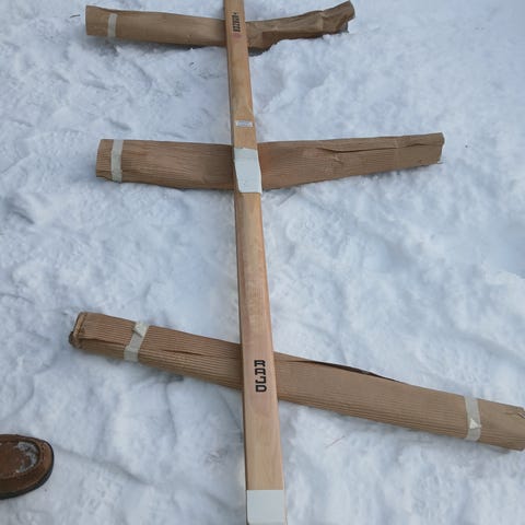 Turskidor Åsnes Liv med Rottefella BC-bindning. Har fästpunkter för korta stighudar. Markören för stighudsfästet på ovansidan av skidan är borta på den ena skidan men inget som påverkar funktionaliteten för att fästa stighuden eftersom fastsättningen görs från undersidan.
