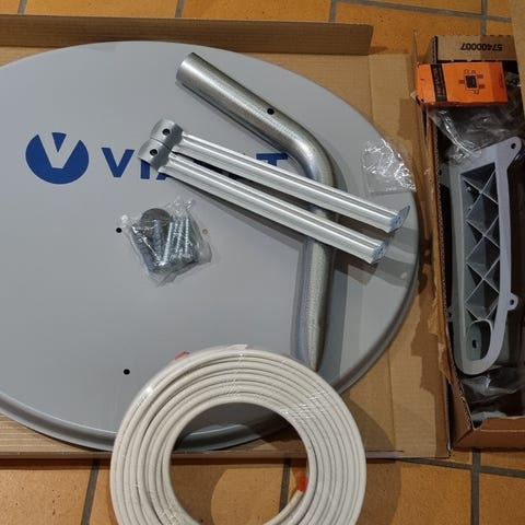 Lackerad parabol med ställning och andra tillbehör. Helt oanvänd