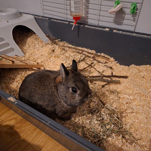 Två kaniner födda 11/6-25 och bur till salu. Medföljer även tillbehör. Allt sälj tillsammans.