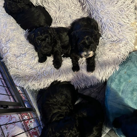 Har 2 valpa kvar en liten tik mandel och en liten hane tiger. Dom är en blandras som är allergi vänlig och men mångsidig hundras som kannhänga med på det mästa perfekt första hund eller i barn familj. Dom är nu 10 veckor och leverans klara