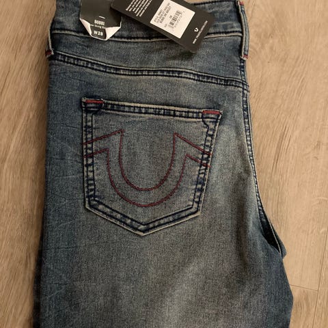 True Religion jeans för dam i storlek XS. Tillverkade i blå denim, dessa jeans har en klassisk design och är anpassade för kvinnligt bruk.