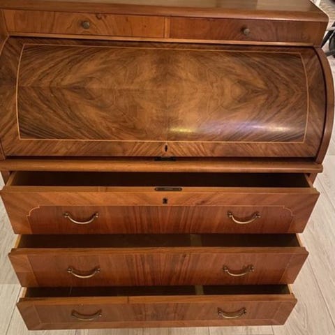 Fin liten sekretär med fina detaljer. Har använts som skrivbord av min mormor och sen av min dotter. Fint skick.