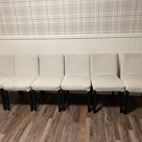Två köksstolar från IKEAS serie EKEDALEN, säljes för 25kr/st. Sittdynans klädsel/överdrag är avtagbart och kan tvättas i tvättmaskin.