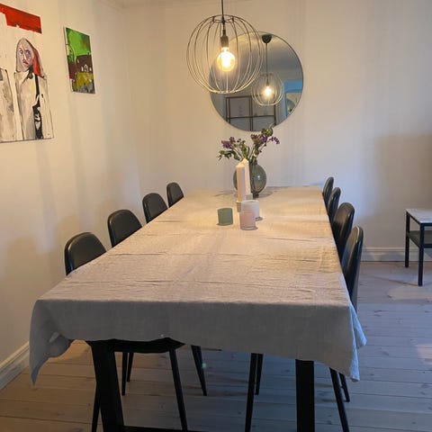 Bordet passar perfekt för stora middagar och rymmer 8–12 personer (upp till ca 14 vid fullt utdrag).