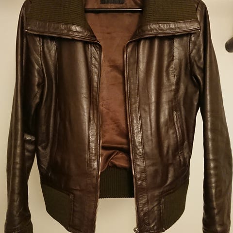 Mjuk Brun skinnjacka med lammull invändigt. Mycket bra kvalitet, sparsamt använd. Skräddarsydd så har ingen storleksmärkning eller namn/märke. Hel och fin!