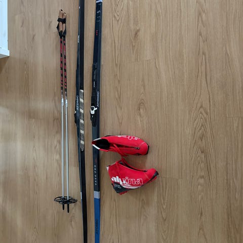 Säljer mina pappas längdåkningspaket då han inte kommer att åka mer skidor. Han har tidigare åkt några vasalopp men inte med detta nya paket.
