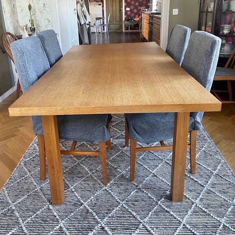 Bord massivt trä nypris 19.000 Ekeby möbel affär. Går att slipa och betsa eller olja för den som vill. Bord enskilt 4000