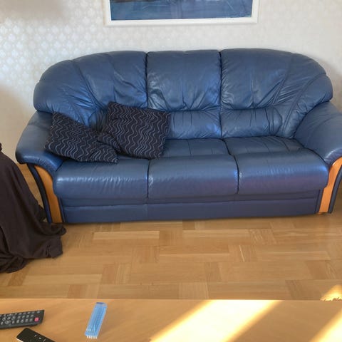 Bröderna Anderssons soffa i ljusblått tyg