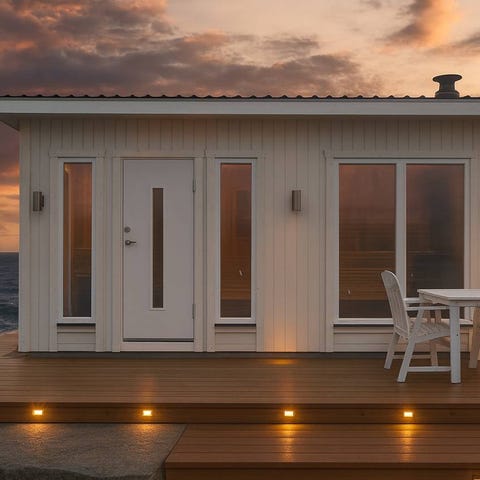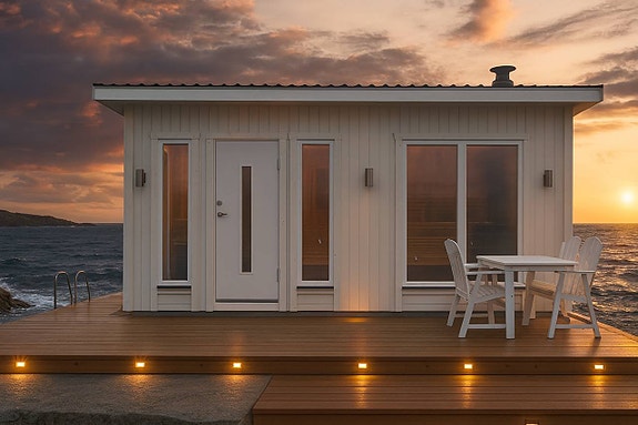 Denna bastu är byggd med godkända säkerhetsavstånd till brännbart material och godkänd för byggnadslov.