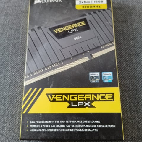 Corsair Vengeance LPX RAM-minne med DDR4-teknik och en hastighet på 3200MHz. Designad för att ge stabil prestanda i datorer som stödjer denna typ av minne. Helt ny; aldrig öppnad.