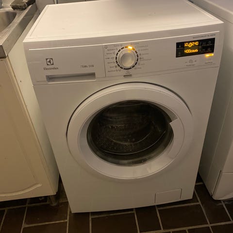 Electrolux frontmatad tvättmaskin som tar liten plats, bara ca 40 cm djup, och tvättar 4 kg. Tvättmaskinen har något skadad gummipackning (bälg), se bild, och läcker lite grann vatten vid användningen, annars felfri.