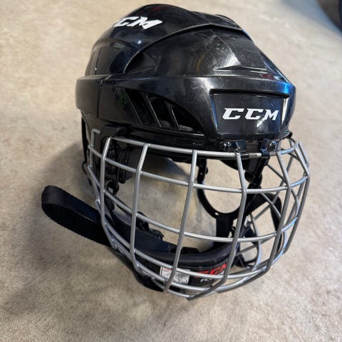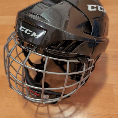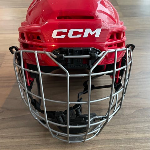 Röd hjälm CCM med galler i bra skick. Storlek S.