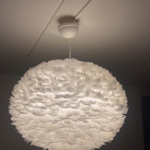 Säljer en så gott som ny Umage Eos fjäderlampa (lampskärm) large. Original förpackning finns kvar och kan packas ner och skickas om så önskas. Skicka gärna meddelande om ni har några frågor eller önskar fler bilder.