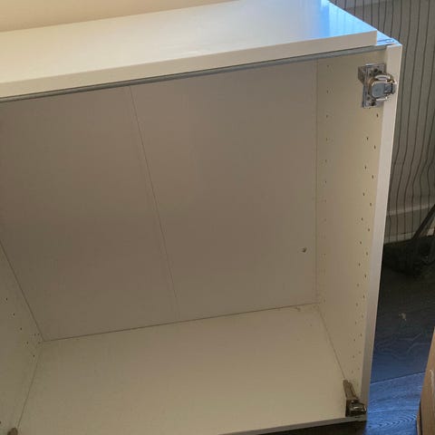 Helt nyköpt och monterad bänkskåpsstomme från IKEA. Obs! Hål gjort längst ner bak på stommen. Detta syns dock inte när lådor kommer på plats.