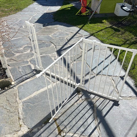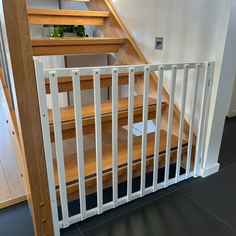 IKEA trappgrind som monteras utan borrning, färg vit. Passar för att säkra trappor och avgränsa områden för barn.