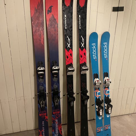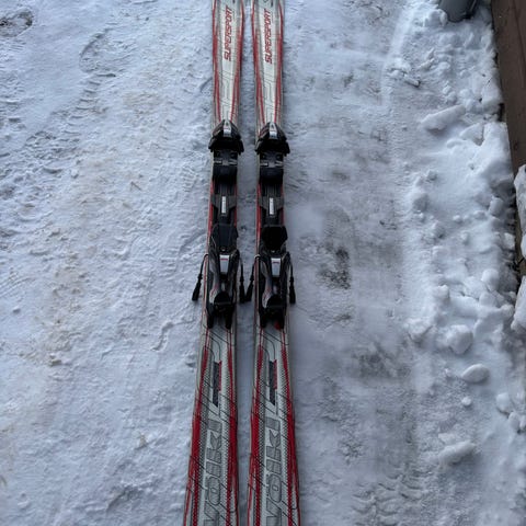 Ett par klassiska Stöckli Laser SC 178 cm. Välanvända, men belagen är okay. Ett par roliga skidor från schweiziska Stöckli som hade högt pris när de var nya. Bindningar från Salomon som har märken, men fungerar bra.