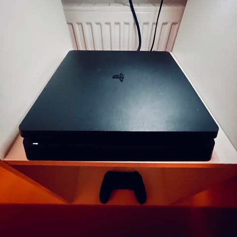 Sony Playstation 4 spelkonsol, svart färg, standardmodell. 1 dosa ingår men strömkabel saknas då jag behövt använt den till annat