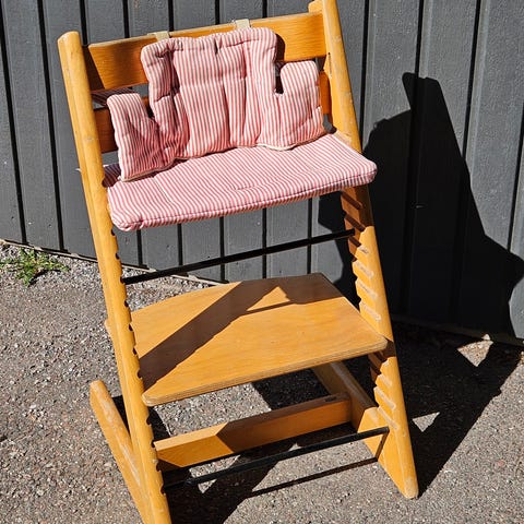 Säljer ett rött tripp trappset till Stokkes tripptrapp stol