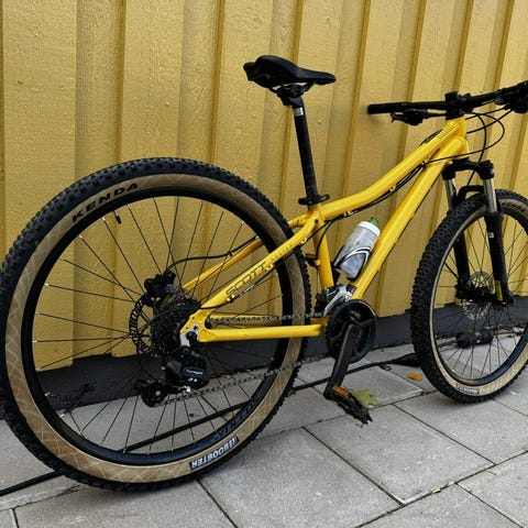Bra, använt skick. Säljes pga grabben bytt upp en storlek på cykel. Mest använts till skolan och kompisar. Dirtjumper som passar fint för barn ca 130-160.