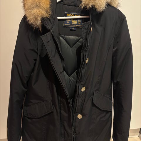 Dunjacka med dubbelknäppning och avtagbar huva från Woolrich. Dubbel dragkedja fram och hög innerkrage. Huvan har även ett avtagbart foder och krage i naturpäls. Jackan är vattentålig och har en tvåvägs dragkedja fram samt dold knäppning med vindklaff och två snedställda frontfickor med ficklock. Det höga innehållet av dun gör jackan till en mycket varm vinterjacka.