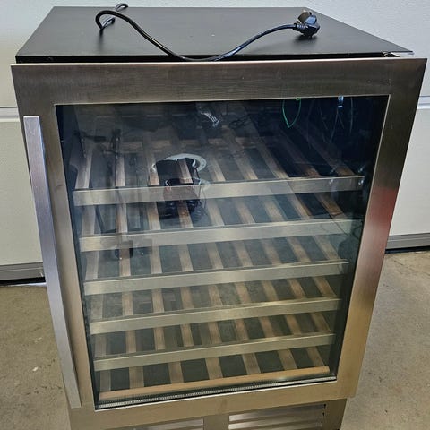 Säljer en Samsung vinkyl i elegant svart design med glasdörr och kromade hyllor. En snygg och praktisk lösning för att förvara vin i rätt temperatur – perfekt för hemmet, kontoret eller lägenheten.