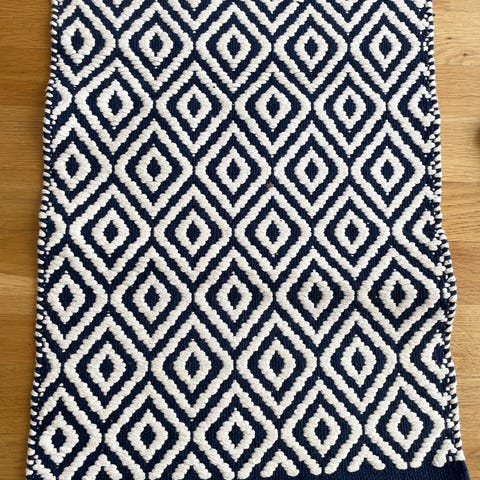 Blå och vit/naturfärgad bomullsmatta med flätade bomullsrep från Etol Design.