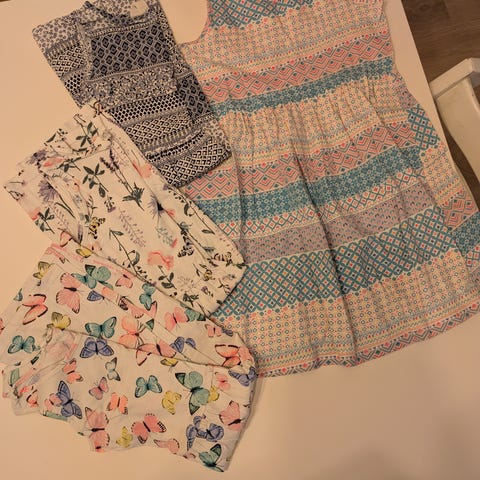 Tommy Hilfiger klänning i flerfärgat mönster, storlek 110 för flicka. Tillverkad i bomullsmaterial. Ärm- och midjedetaljer synliga på bilder.