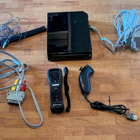 Nintendo Wii säljes med 7 spel, allt på bilden ingår.