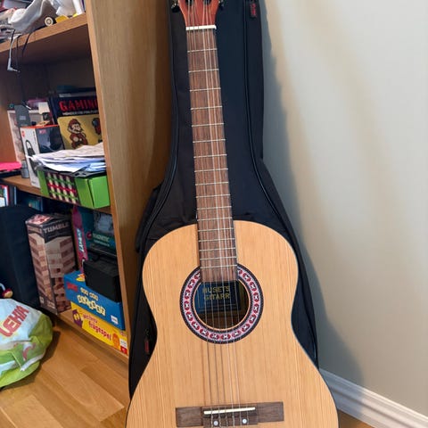 Akustisk gitarr med sunburst-finish. Passar för olika spelstilar och användningsområden.