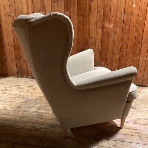 2st Gråa Strandmon Fåtöljer med tillhörande pallar måste bort pga flytt och platsbrist.