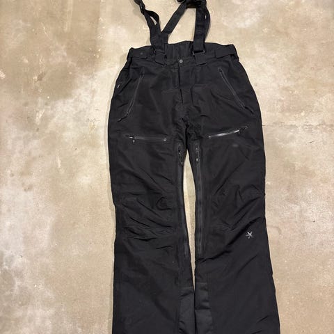 Sparsamt använda skidbyxor från High Mountain/Engelsons modell Himmelfjäll i storlek C100. Perfekt om man behöver lite mer utrymme i midjan och/eller är lite kortare (se storleksguide I bilden). Ordentliga snölås i benen och hängslen. Bra byxa!