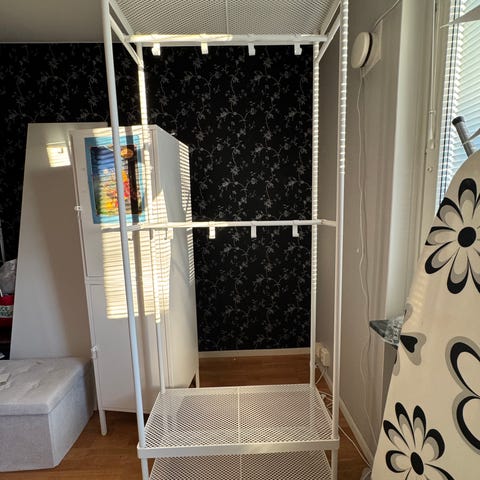 Clothing rack from Ikea, in good condition. Either just the rack for 50kr, or together with the black hanging shelves for 90kr. Hangers can be included for another 20kr. But prices can be negotiated