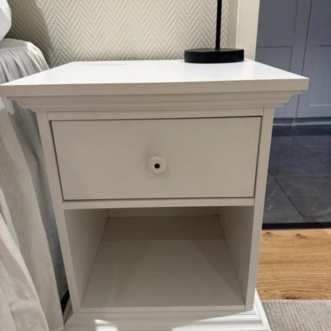 Vi har helt nya vita sängbord i obruten förpackning. Säljer dessa på grund av dottern har ångrat sig.