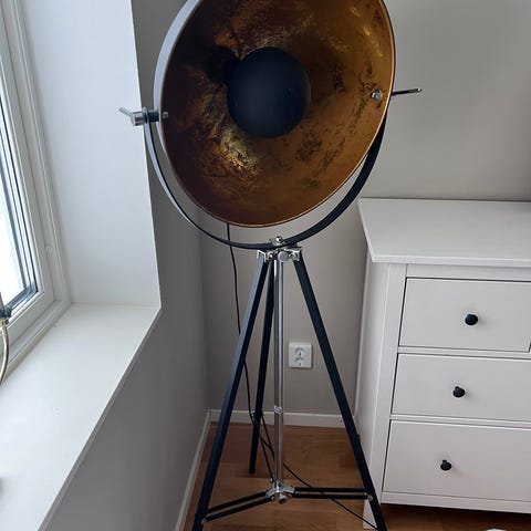 Den här golvlampan från By Rydéns söker nytt hem. I jättefint skick. Lamporna tänds var för sig vilket gör att du antingen kan ha en eller två tända samtidigt. Skärmarna kan justeras i sitt läge. Skärmar i jättefint skick.