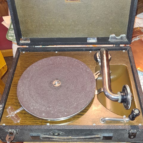 Detta är ett äkta samlarobjekt från grammofonens storhetstid, betydligt mer intressant än senare massproducerade modeller.