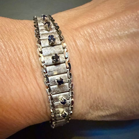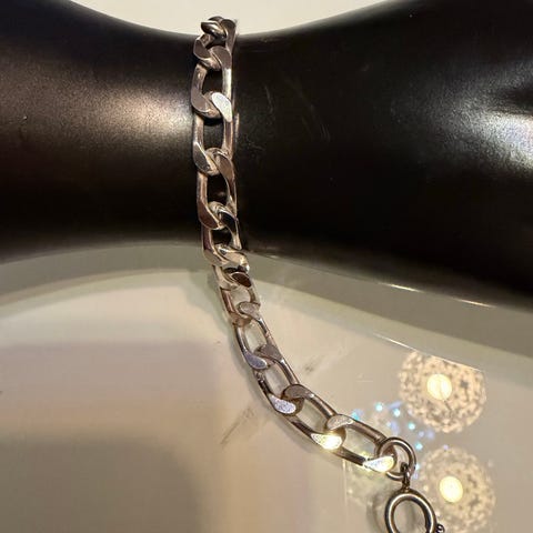 Ett vackert armband i sterlingsilver (925 stämplat) prytt med gnistrande markasiter. Armbandet har en elegant design med blommiga detaljer och en säker karbinhake. 18 cm. Någon sten kan ha ramlat men syns knappt
