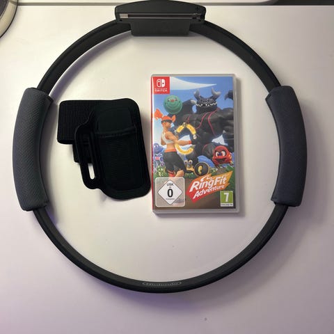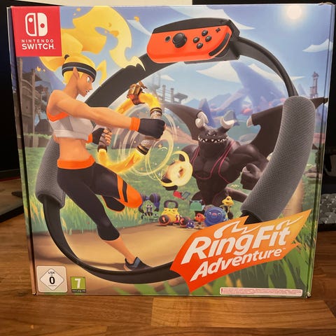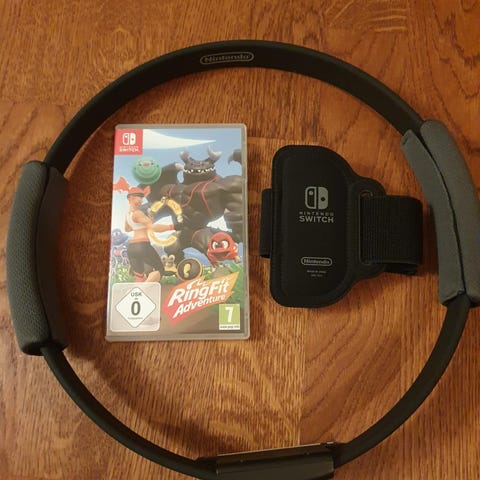 Säljer träningsspelet "Ring Fit Adventure" till Nintendo Switch. Det är ett spel där du kopplar in den ena Switch-kontrollen i ringen och den andra i remmen runt benet. Dessa läser sedan av dina rörelser så att du sedan kan spela och träna samtidigt hemma framför TV:n.