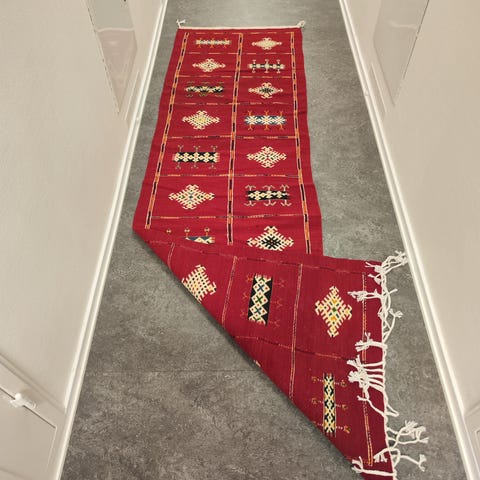 Mattan är handplockad under mina resor till avlägsna delar av Atlasbergen, där jag personligen väljer ut varje exemplar direkt från nomadfamiljer som väver enligt traditioner som gått i arv i generationer.