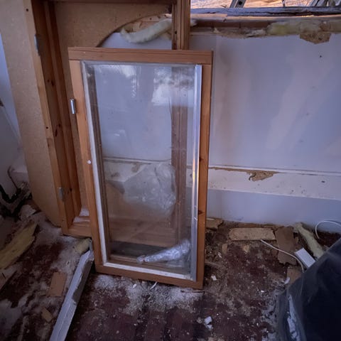 Fönster 80cm yttermått och 88cm yttermått mellan fönsterkarm. Vänsterhängd med träram.