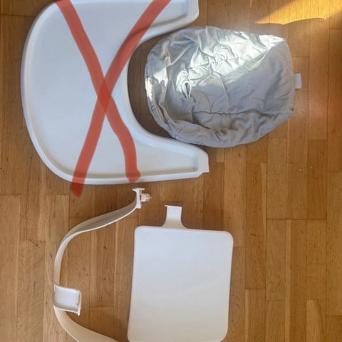 Vit bricka till Stokkes klassiska barnstol Tripp Trapp. Används tillsammans med babyset (V2/V3) och monteras ovanpå plastbygeln.