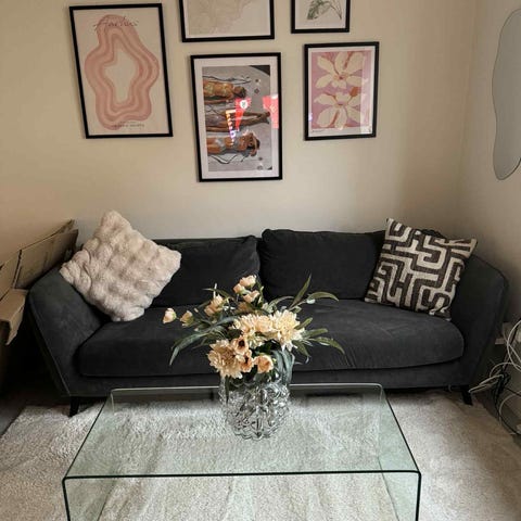 Fin soffa från Mio i mörkgrått sammetstyg. Inga fläckar eller skavanker.