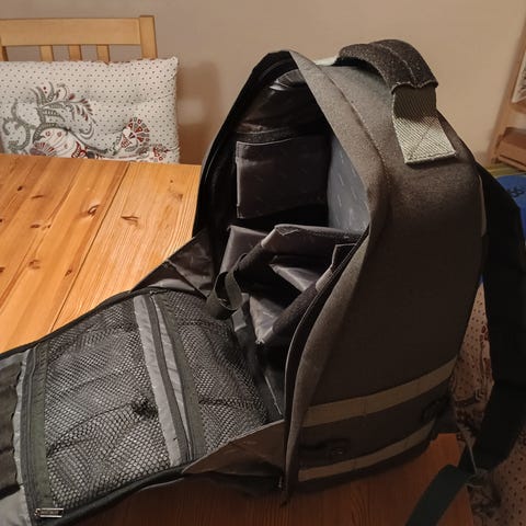 Mycket fin och bra kameraryggsäck. Snyggt utseende och bra utrymme, både i kameradelen och sedan utrymme överst.