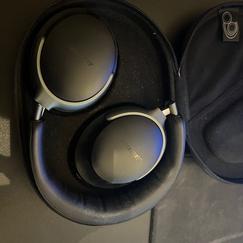 Bose QuietComfort 35 trådlösa hörlurar i silverfärg. Hörlurarna har en över-ear design och är utrustade med brusreduceringsteknik. De är avsedda för trådlös användning och passar för allmänt lyssnande.