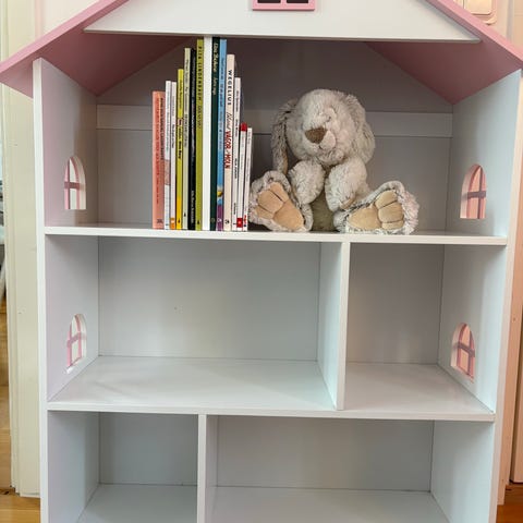 Bokhylla/dockhus i vitt. Mått ca 107x144cm.