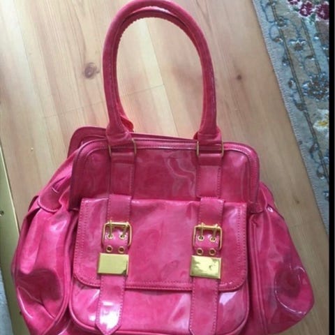 GUESS handväska tillverkad i fuskläder. Designad för kvinnor. Väskan har en rosa färg med detaljer i brunt. Utrustad med handtag och axelrem för olika bäralternativ.
