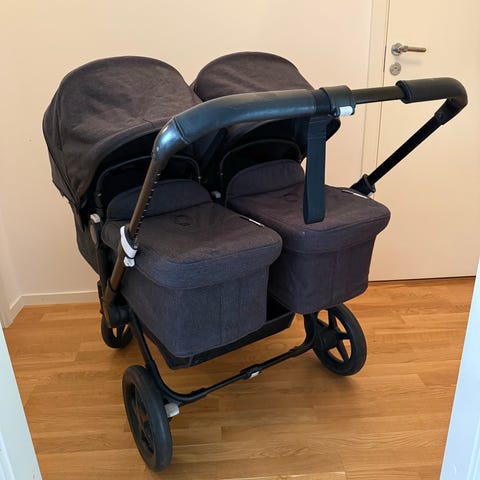 Bugaboo Donkey 5 duo (syskonvagn med en liggdel och två sittdelar). Forest green sufletter, midnight black klädsel och svart chassi.